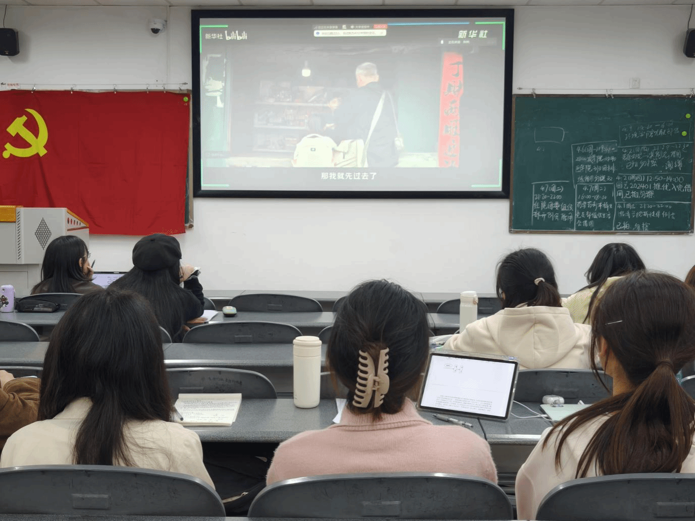 图为党支部同志集体观看微电影