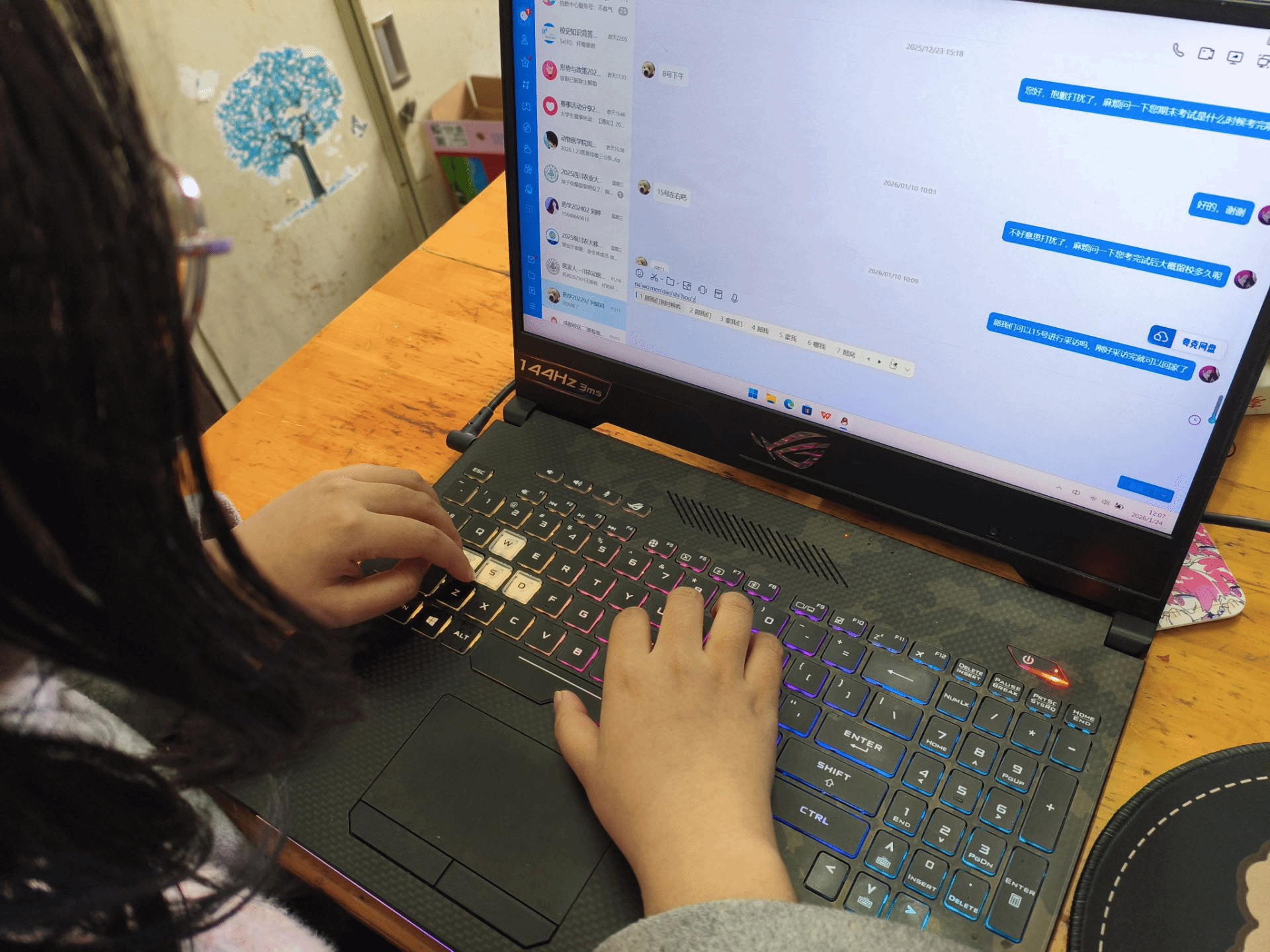 (图为A组周玉希线上联系访谈学长)