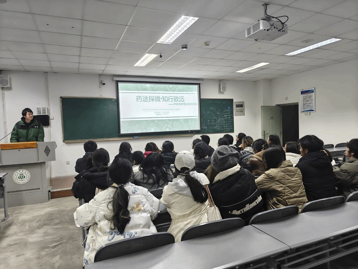 (图为B组魏皓希主持药剂专业知识竞赛现场)