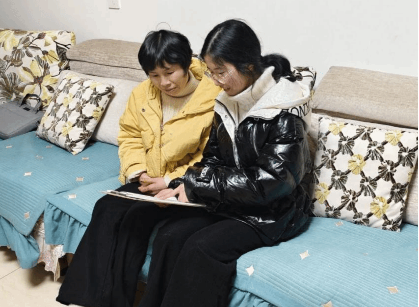 (图为成员向家人宣传网络安全知识)