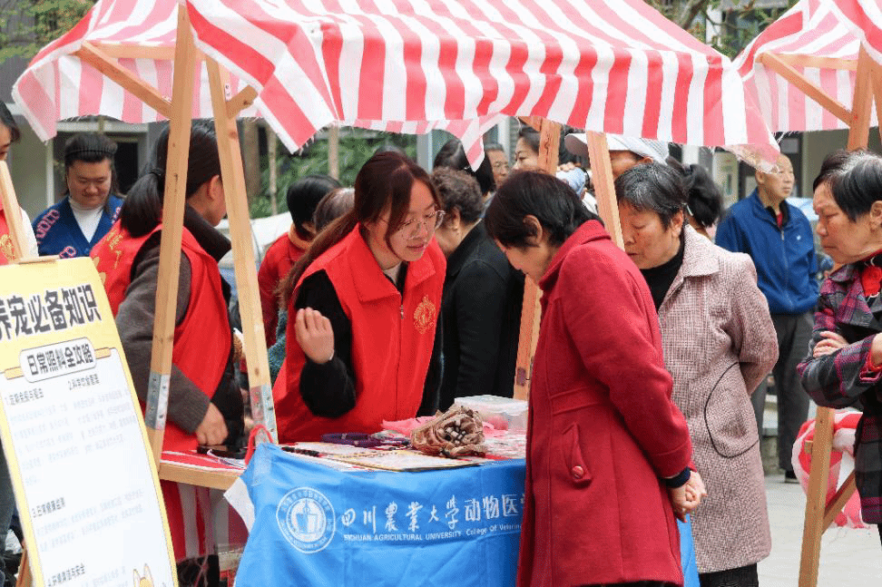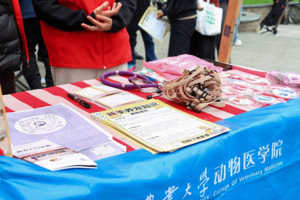 在义诊服务的同时,团队成员还围绕宠物主人普遍关心的问题开展现场科普与咨询服务。针对日常喂养方式、疫苗接种时间、体内外驱虫频率、宠物行为管理以及常见疾病预防等问题,志愿者们结合所学专业知识和临床实践经验,进行细致讲解与指导,帮助居民建立科学养宠理念。此外,团队还向社区居民发放牵引绳、文明养宠宣传单和人畜共患病防控宣传手册,普及狂犬病防控、寄生虫防治等公共卫生知识,引导居民树立文明养宠意识,共同维护良好的社区环境与公共卫生安全。