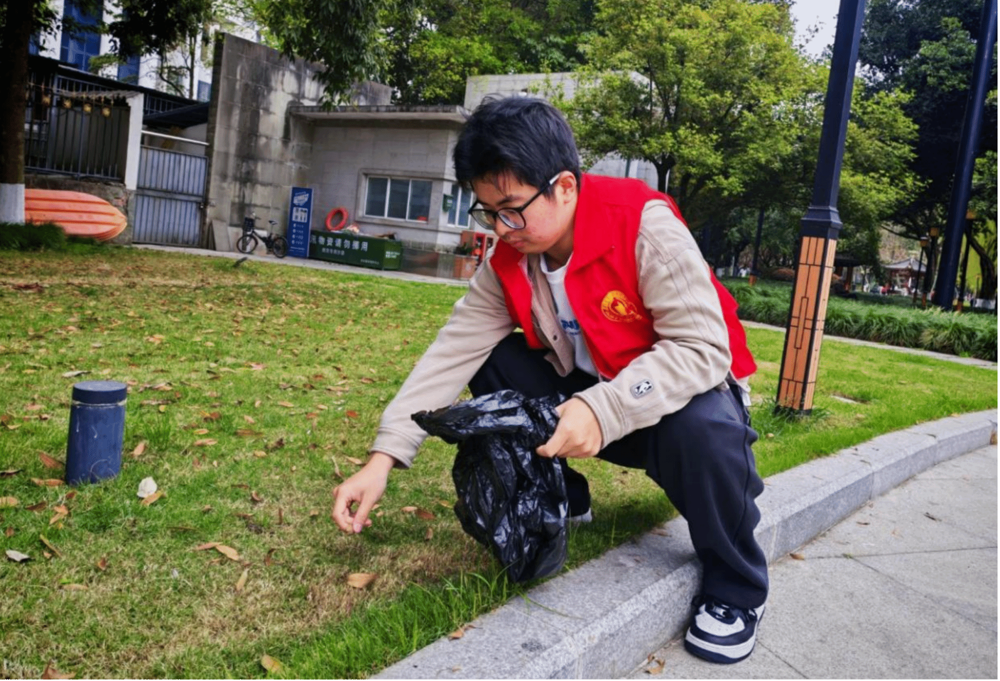 (图为动医202305团支部成员开展垃圾清理工作)