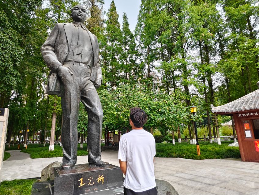 8月20日,队员田浩言来到四川省成都市温江区的王光祈纪念馆。王光祈先生作为五四时期著名社会活动家、音乐家,早年积极参与进步运动,是《每周评论》等重要刊物的撰稿人,更与李大钊等人共同发起“少年中国学会”。他虽远赴德国研习音乐,却始终心系祖国,以音乐与文化为媒介,探索中华民族复兴之路。他“坐冷板凳,做热心人”的精神,深深感染了每一位队员。
