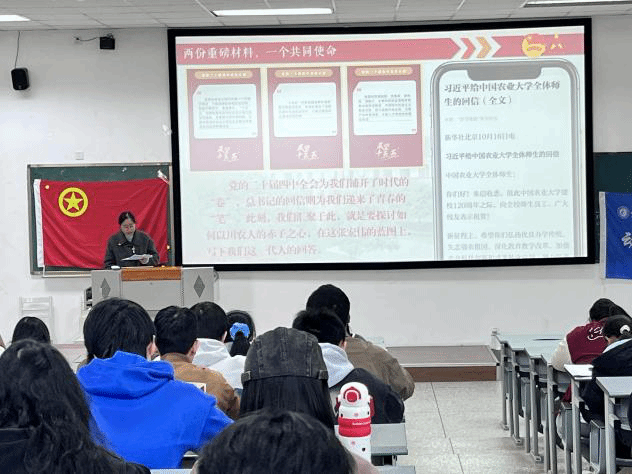 为深入学习贯彻党的二十届四中全会精神,凝聚青年奋进力量,11月27日,动物医学院团委组织药剂、动检等6个团支部,开展了“深悟全会精神 奋进崭新征程”11-12月班团主题活动,各支部团员青年齐聚一堂,在理论学习与思想碰撞中筑牢信仰之基。