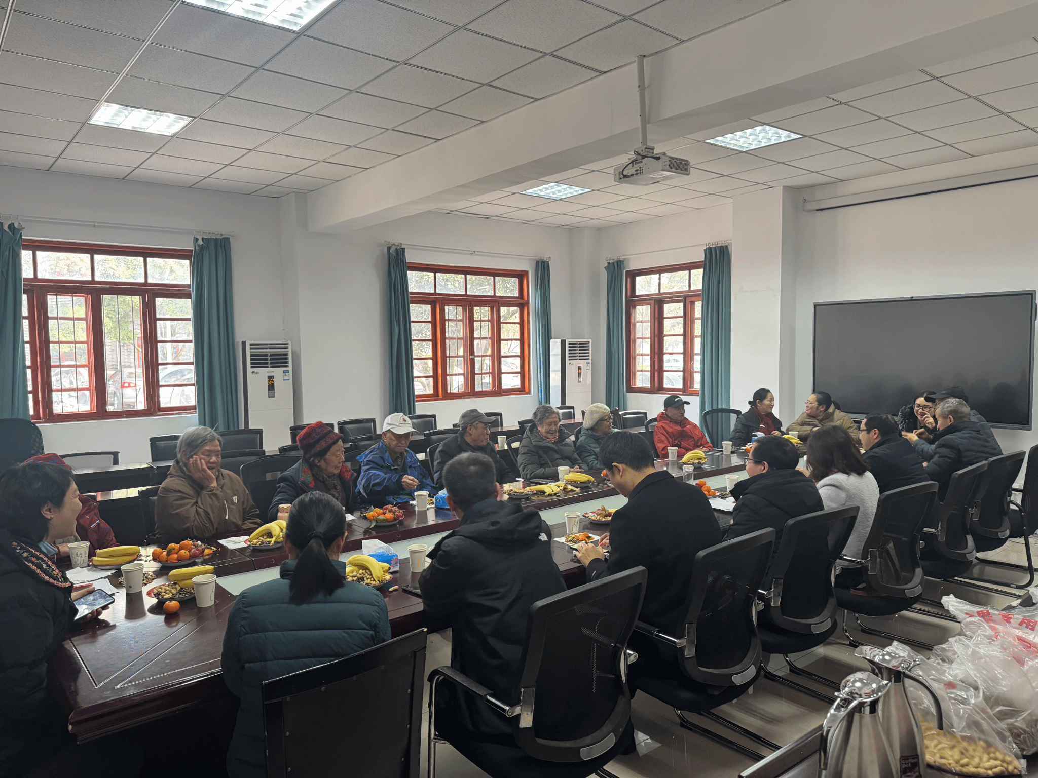 老教师们踊跃发言,严科第教授回顾执教生涯,为学院发展成就倍感自豪;退休老党员钟妮娜同志叮嘱学院厚植红色基因、培育新时代兽医人才;刘长松老师结合自身经历,围绕学科专业建设、教学经验传承等方面提出宝贵意见。多位老教师各抒己见,为学院发展建言献策,字里行间满是对学院的深切关怀。学院领导班子认真倾听、逐一回应,为老教师们送上新春慰问品,现场氛围温馨热烈。