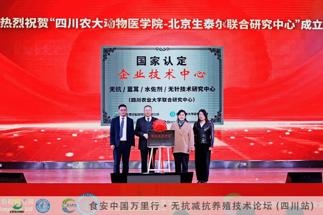 论坛期间,一项重要成果正式落地——由我校动物医学院、北京生泰尔公司联合华中农业大学、中国水产科学研究院长江水产研究所等十余家单位共建的“无抗减抗技术联合研究中心”正式揭牌成立。