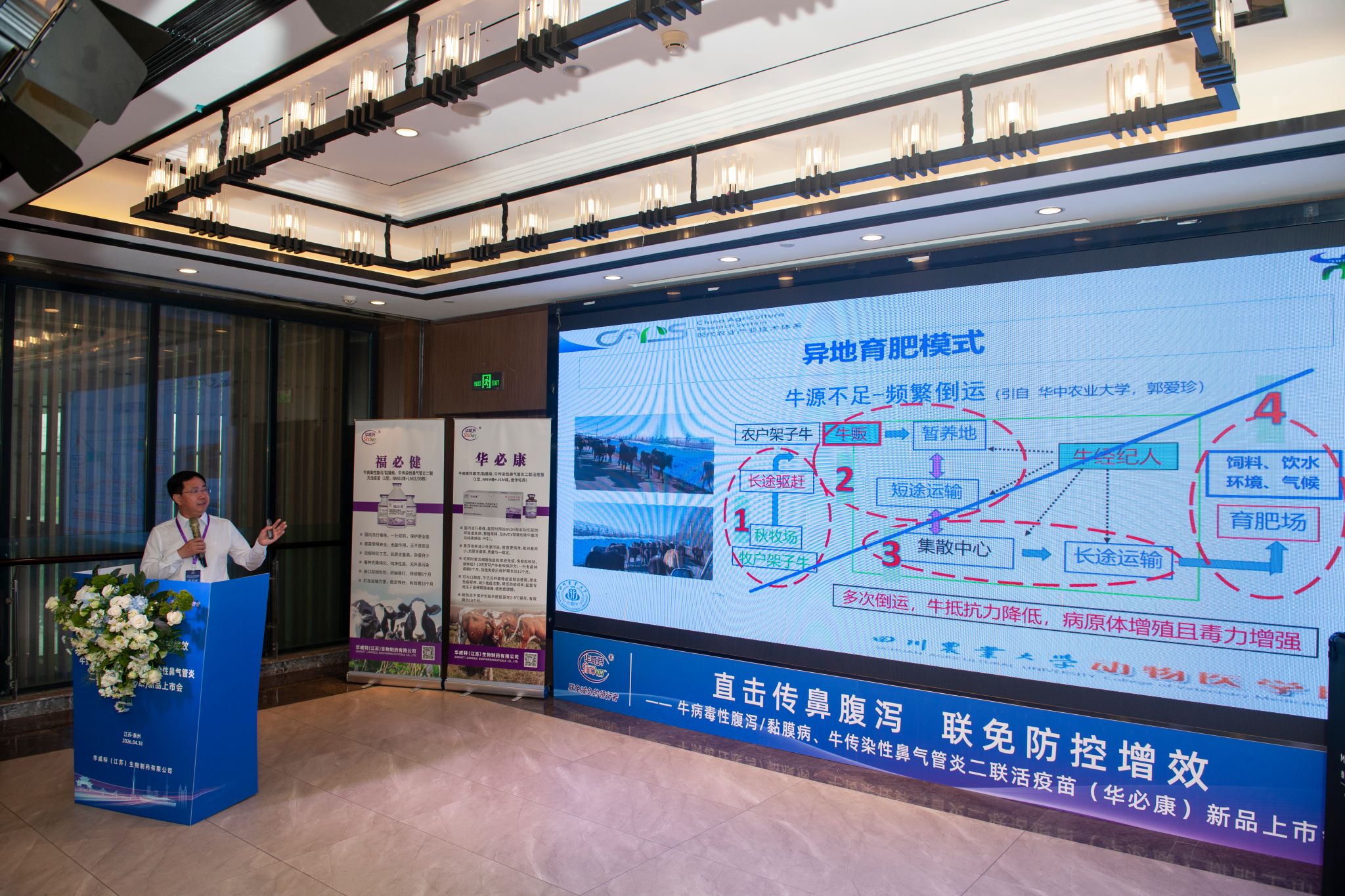 左之才教授就当前我国肉牛产业的结构性机遇与挑战,并结合临床常见疾病(异地育肥应激、酸中毒及牛流行性腹泻、传染性鼻气管炎的发生情况)数据和典型症状解析等做了报告分享,为养殖场提供了科学的防控思路。本次会议主题为“直击传鼻腹泻,联免赋能牛业”,旨在聚焦牛腹泻、传鼻等常见疾病的防控痛点,分享行业前沿研究成果,推动牛疫苗产业创新发展与技术交流,搭建产学研用深度融合的行业交流平台。