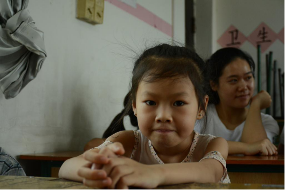 这是这个小姑娘连续第四年参加夏令营,她却依旧像第一次一样专注,而且她记得四年里来过的所有支教“老师”。