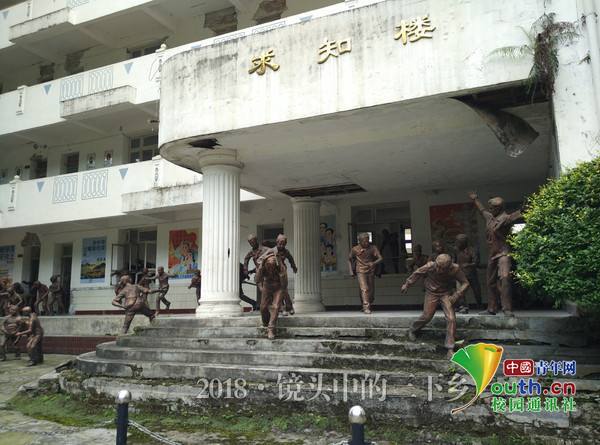 从白鹿镇停车场出来,步行几百米便是白鹿的老学校,目前已经变成地震遗址和地震教育中心。当地人介绍到:“地震中,这所白鹿镇九年制学校的三层教学楼被抬高了3米,但主体建筑竟然没有受到破坏,所以现被称为地震中的‘最牛教学楼’”。