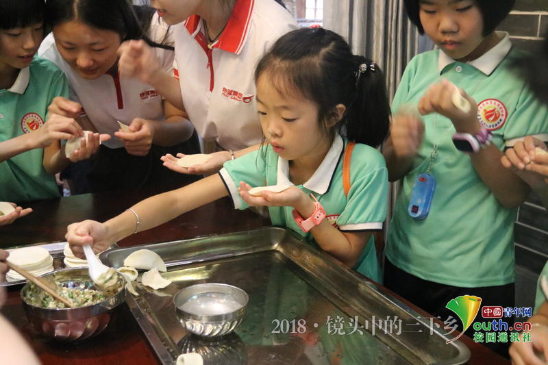 孩子们一起动手包饺子,场面十分热闹。中国青年网通讯员 许佳雪 摄