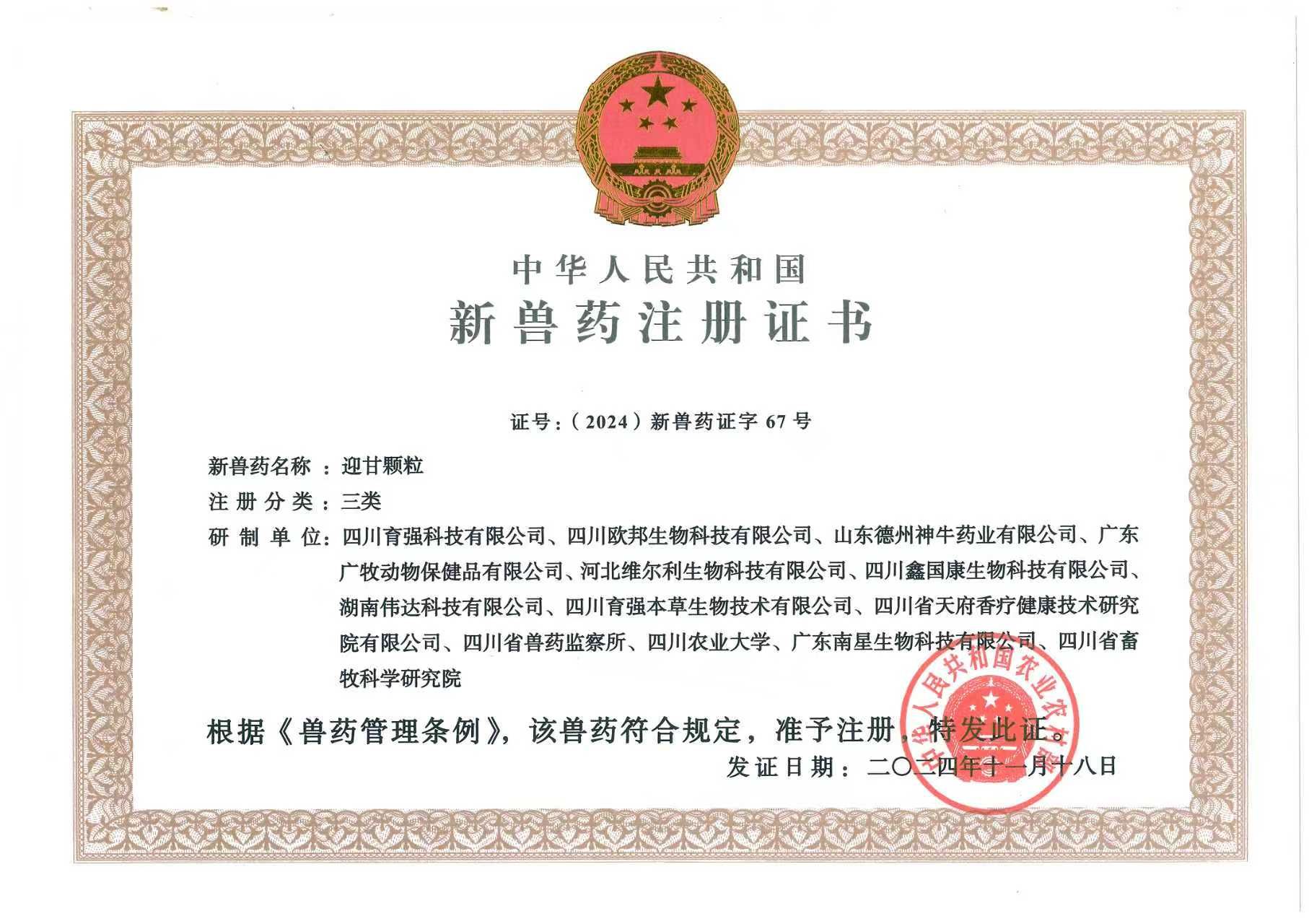 国家一类新兽药
